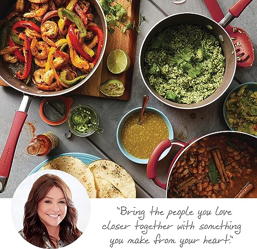 - DURABLE DESIGN: Nonstick pots and pans from Rachael Ray are crafted with durable aluminum and sturdy hard enamel porcelain exteriors to stand up to busy kitchens